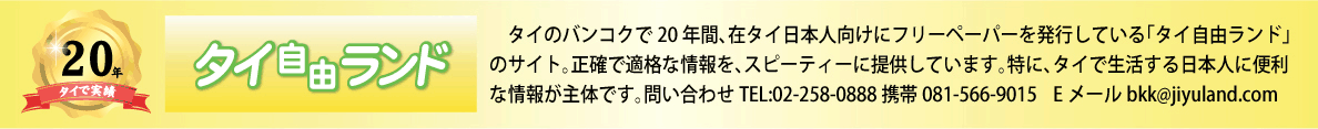 広告に関してのお問い合わせは ℡02-258-0888 阿久根まで。下の広告またはメールで thai@jiyuland.com までどうぞ。