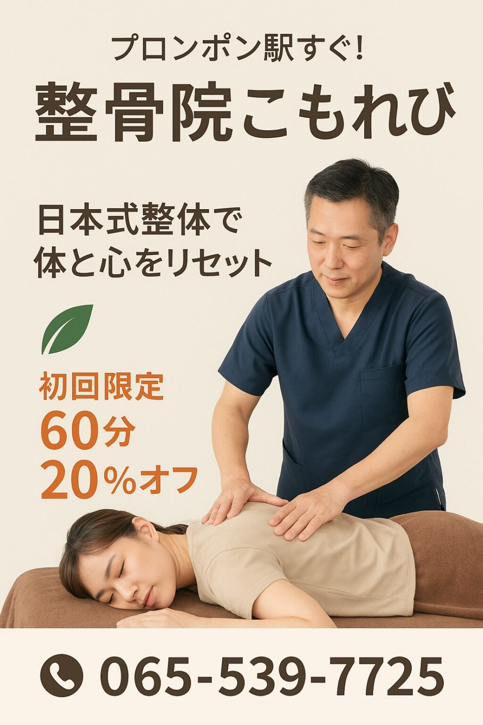 「整骨院こもれび」―プロンポン駅すぐ!日本式整体で体と心をリセット