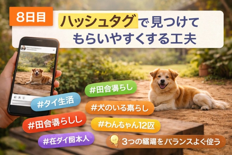 「30日でSNS映えするタイ田舎生活発信」8日目 ハッシュタグで見つけてもらいやすくする工夫