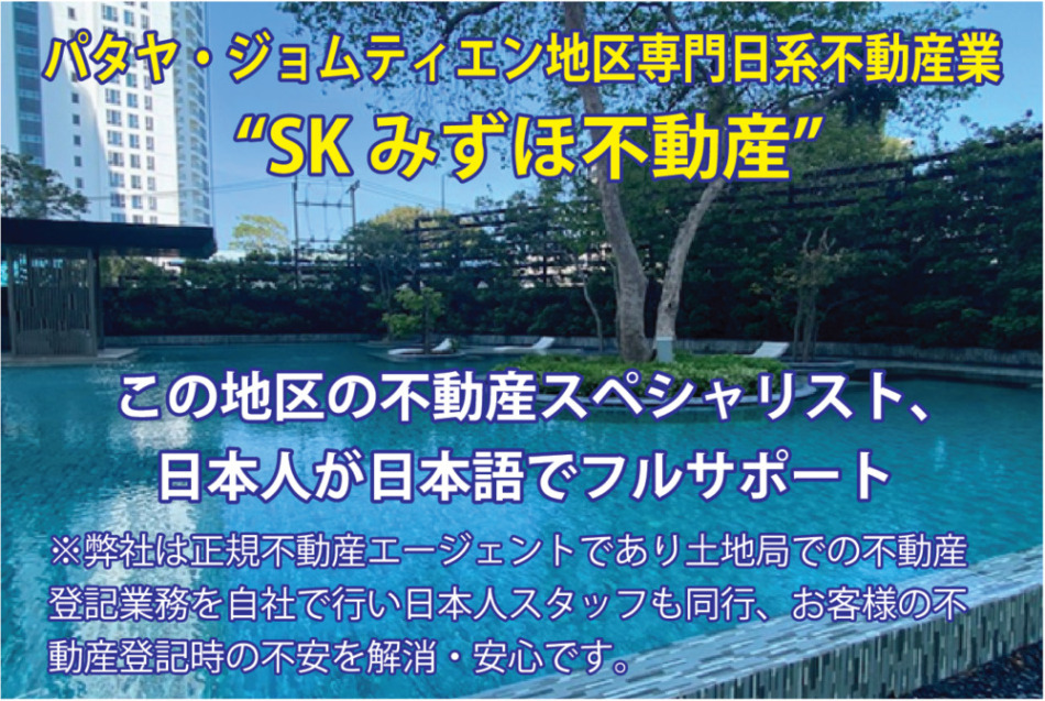 (7) パタヤ・ジョムティエン不動産購入なら「SKみずほ不動産」!日本人スタッフが日本語でフルサポート! | タイ バンコク タイ自由ランド. https://jiyuland5.com/post-144800/.