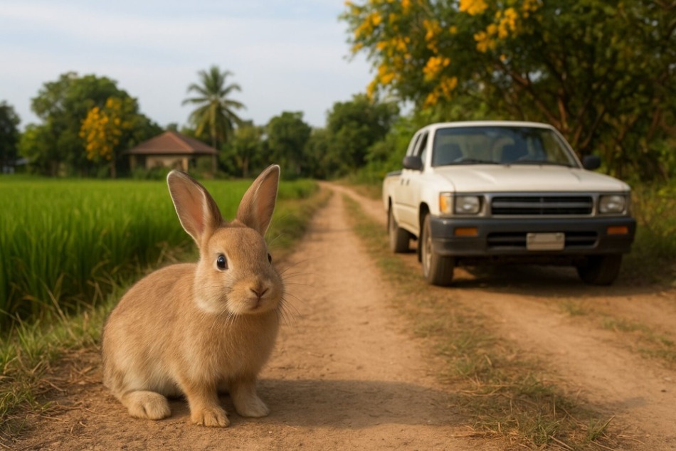 乾季が始まった10月24日、涼しい風とトンティーンペット(金木犀)の香りに癒されつつ、近所で起きた爆笑ニュースをゲット! なんと、借金の取り立てでペットのウサギが連れ去られた事件! え、ウサギ!? って声出たわ。3分でサクッと読める、イサーン在住者目線の話、行くよ~!🐇