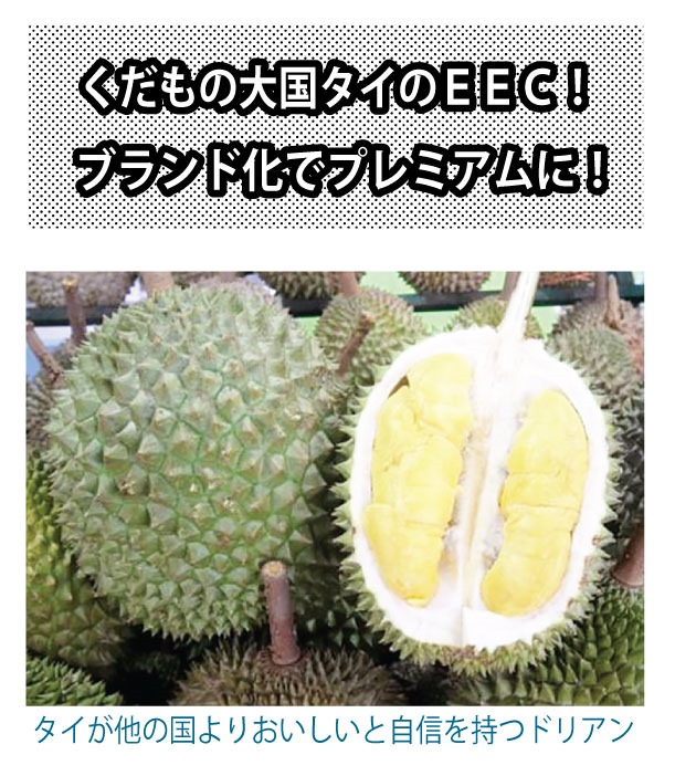 これらのくだものが多く取れるタイ東部のチャンタブリーは、外国企業の誘致を行なっているEECのすぐそばで、タイ商務省ではラヨーンのスマートパークに拠点を構えて、タイくだもののブランド化を推進していいきたいとしている。