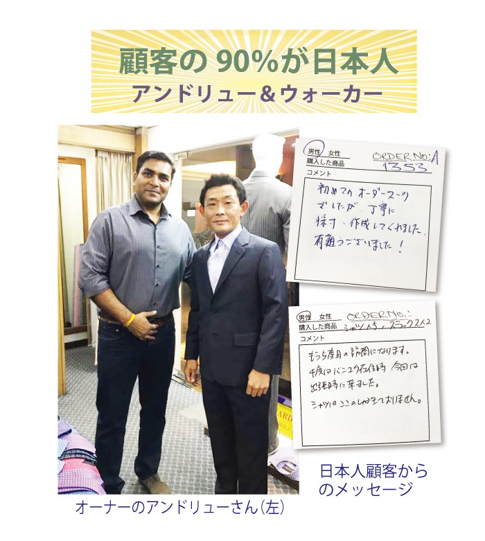 オーナーのアンドリューさんは、大の親日家で、なんと顧客の90%は日本人。細部にまで行き渡ったこだわりと仕上がりが好評で、リピーターが多いのも納得です。