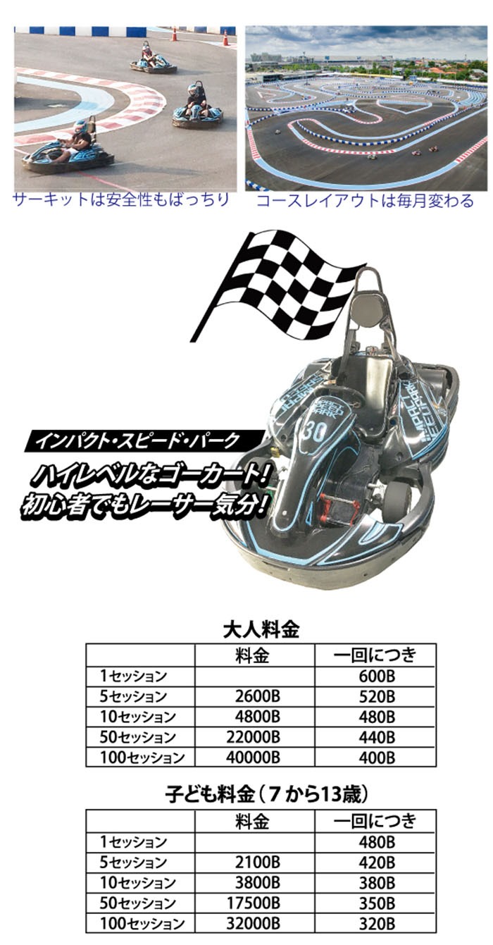 「インパクト・スピード・パーク」は、レーサー気分を味わえる本格的なゴーカート専用サーキット。イベントやコンサートが行われる「インパクト」の近くにあり、同じ会社が運営しています。