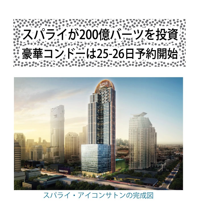 政治の行方が不透明の中、不動産ディベロッパーらも新規計画を自粛している中、大手スパライ社によると、サトーン通りの旧オーストラリア大使館の土地7ライでの開発「スパライ・アイコンサトン」を発表し、そのプロジェクトは、同社30年での中で、一番の投資額となり、200億バーツを投入して新しいランドマークを造ると意気込んでいる。