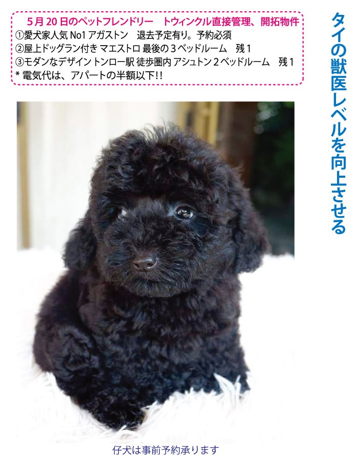 トウィンクルでは、動物病院を併設しております。タイでは日本の動物病院と提携している唯一の病院で、日本語が話せ、日本の提携病院で研修をさせております。先月、東京獣医師会の副理事に来タイいただき、バンコクの医療現場を調査いただきました。ズバリ日本の35年前と指摘された時にはショックでした。