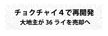 そこにチョクチャイ4という地区があり、タラートなどもあり、大地主のもと30年以上借地をして営業しているところも多いが、それが、ここに来て、契約の終了を言い渡され、チョクチャイ4のタラートを含め、36ライが大手業者に売り渡される見込みで、価格は30億バーツにのぼるという。