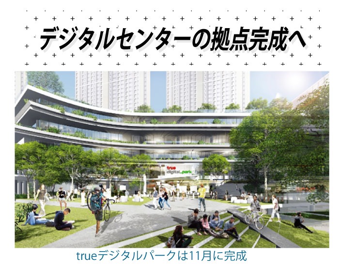 デジタルセンターのハブにと、trueを誘致して実現するもので、43ライで中には高層コンドミニアムが3棟完成し、そのほかレストランなど商業施設200店舗、さらにビジネスオフィスとして企業の誘致もはかる。職住が一体となった空間で、現在、工事進捗は80%となり、まもなく完成の見込みだ。
