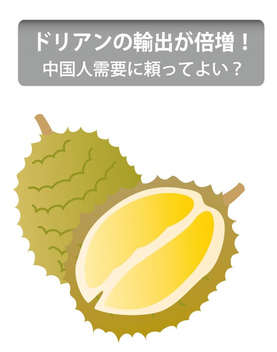 輸出しているタイのくだものでナンバー1はドリアンである。2018年は301億バーツで前年の37%増。今年は1~3月の間だけで、昨年の同期の2倍以上といういう勢いだ。