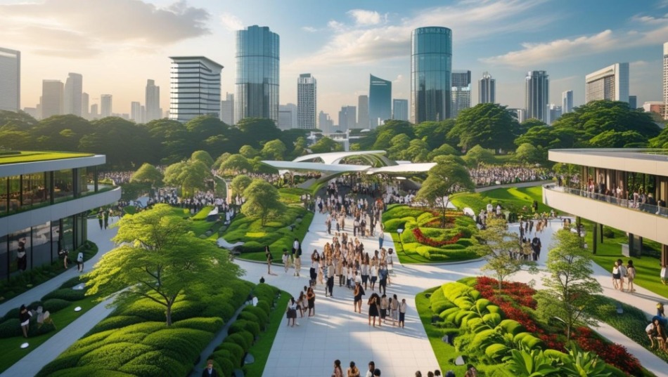 ここ、ただのショッピングモールじゃありません。緑・グルメ・カルチャー・オフィス・ホテルが全部そろった、まさに“未来型都市スポット"なんです。