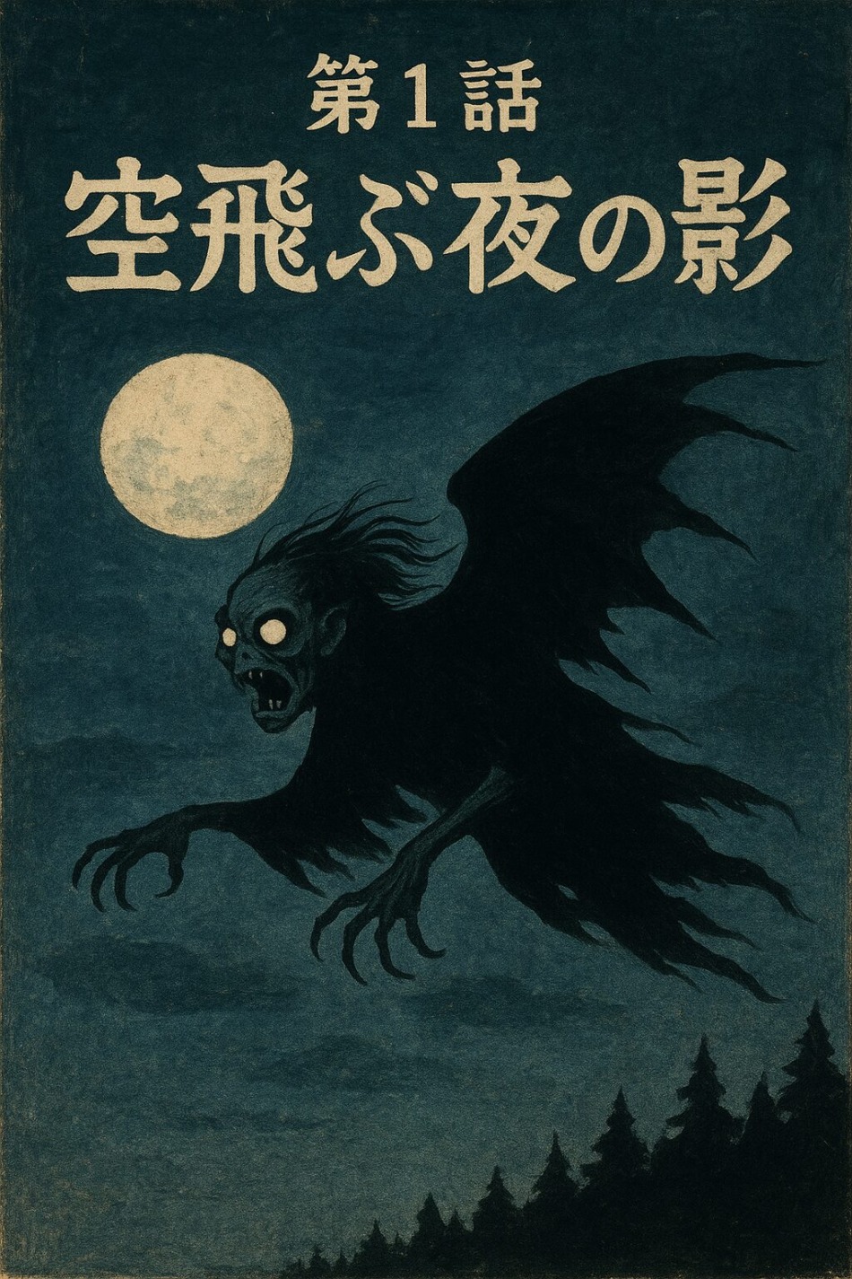 妖怪は空中で旋回すると、佐藤を見下ろした。その瞳は蛍火のように緑に光り、まるで獲物を見つけた狩人のような鋭さを放っている。佐藤の背筋に冷たいものが走る。この妖怪は、明らかに彼を探していたのだ。