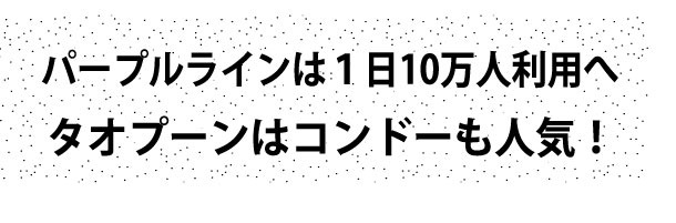 バンコクの路線整備網で、パープルラインといえば、バンスーからノンタブリーのバンヤイ方面に行く路線だが当初、タオプーン~バンスー間が開通しておらず、人気がなかったが昨年8月に開通し、それ以後は1日48000人が利用しており、今年には1日10万人の利用となる見込み。