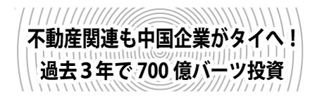 最近は中国のタイへの進出が加速しているが、コンドミニアムなどの開発関連でも、タイ側と組み、タイへの進出が急増している。