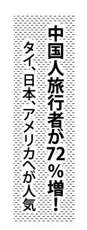 中国人の1日1人当たりの消費は6800バーツほどで、都市では、成都、広州、南京、瀋陽、上海などからが多くタイにやって来ている。