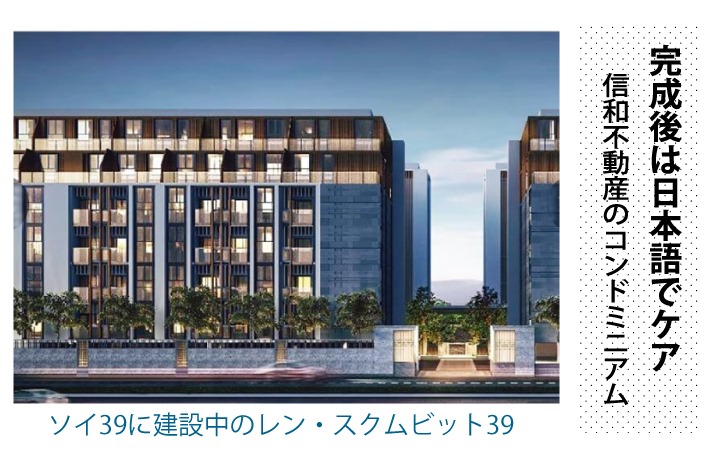 日本から次々と大手不動産会社がタイに進出し、タイのディベロッパーと組み、コンドミニアムの建設などを手がけているが、大阪の中堅企業、信和不動産もタイで信和リアルエステート社を設立し、タイのウォララック・プロパティー社と組み、日本人が多く住むスクムビットで2ヵ所、低層のコンドミニアムを建設中で、その1つは8階建ての「ルネストンロー5」は、事業規模12億バーツで、全156ユニット、2019年中の完成予定で、そしてもう1つは7階建て2棟の「レン・スクムビット39」で、事業規模26億バーツ、全298ユニット、2020年中の完成予定。
