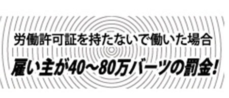 それによると、外国人が労働許可証を持たないで働いている、外国人が働けない業種で働いている、外国人がその会社での労働許可証がないのに働いている、などの場合は、1人当たり、雇用主に対して40万~80万バーツの罰金となる。