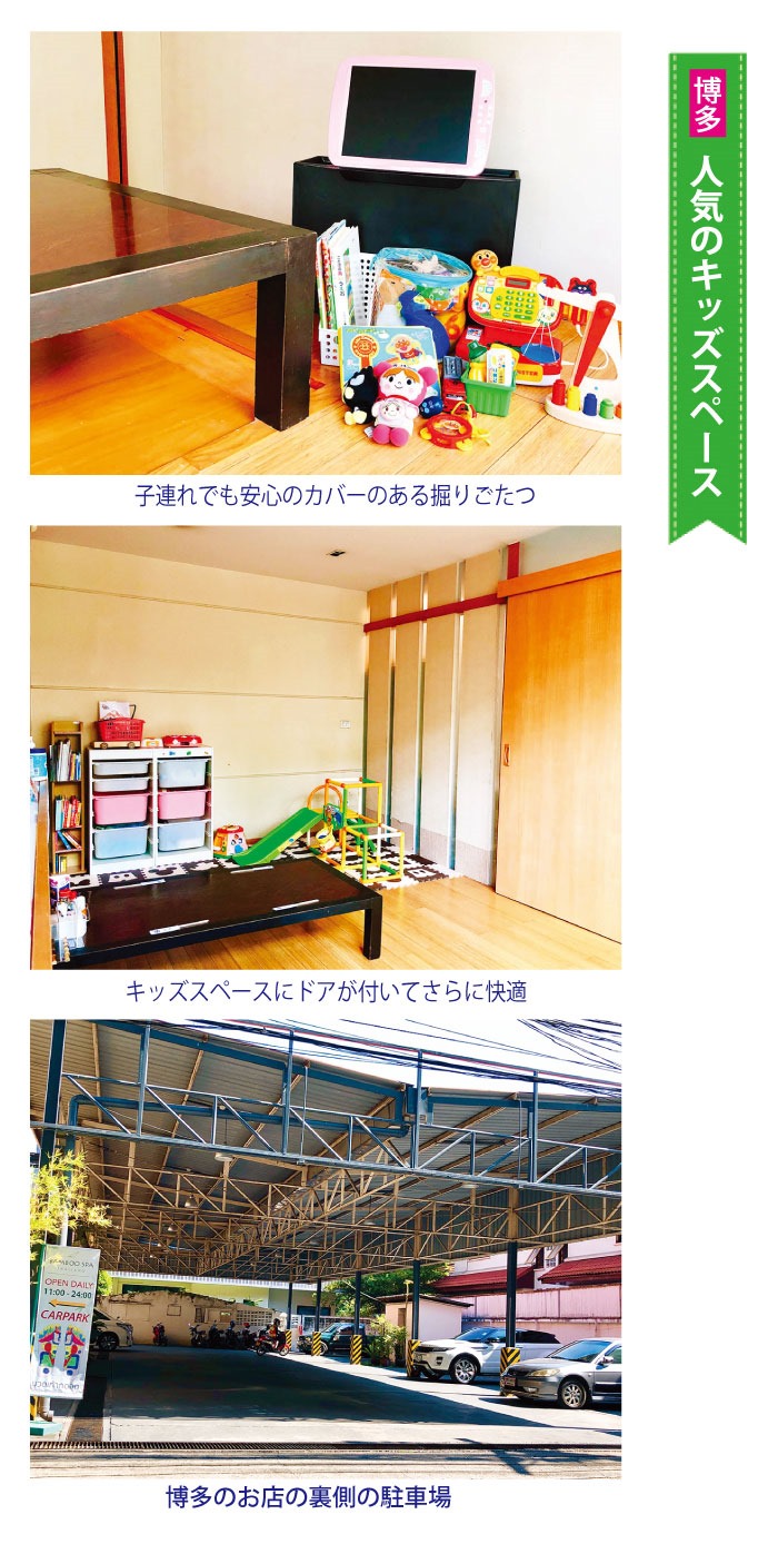 博多とフォーウィングズホテルとの間の道を入ったソイ(お店の裏側)にパーキングがございます。パーキングが満車の場合は、隣のフォーウィングズホテルに駐車頂きましたら駐車無料のスタンプを差し上げます。