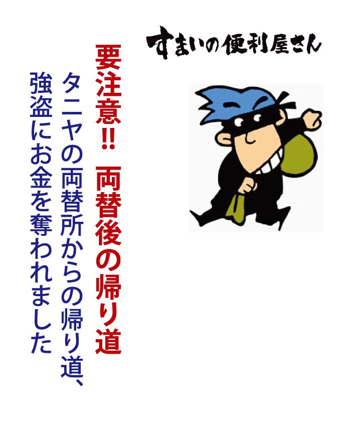当然のことですが、賊は本人が両替所から出てきたのをずーと追ってきたのでしょう。両替所から出てきたのですから、お金を持っていることは確実です。彼らにしてみれば絶好のカモです。