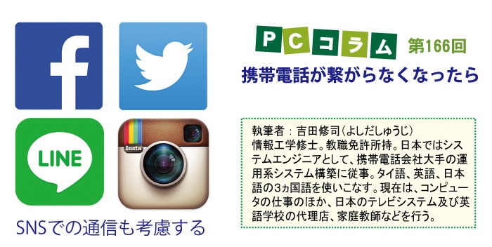 こんにちは。PCサポートタイランドの吉田です。コラム第166回のテーマは「携帯電話が繋がらなくなったら」です。