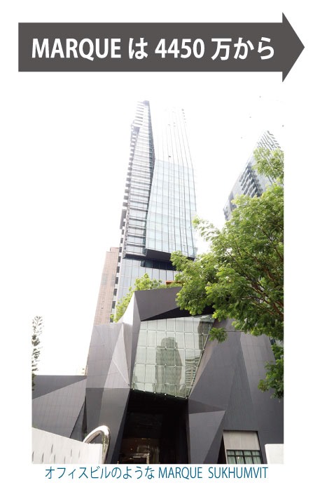 大手の メジャー・ディベロップメント社によると、同社が開発して完成しているMARQUE SUKHUMVITも、当初は1㎡当たり23万バーツで売り出したものだが、今では1㎡当たり333500バーツとなり、1部屋は4450万バーツからの物件となっている。