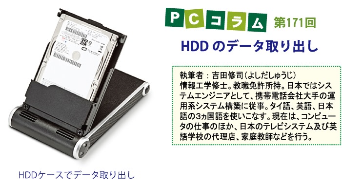 コラム第171回のテーマは「HDDのデータ取り出し」についてです。PCの中のHDD(ハードディスク)は、データを取り出すことが可能です。