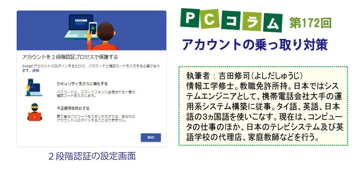 コラム第172回のテーマは「アカウントの乗っ取り対策」についてです。