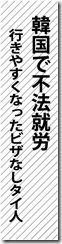 最近は韓国や日本、台湾などに旅行に行くタイ人も急増しているが、90日ビザなしで入れるため、韓国に旅行で行き、そのまま働くタイ人や、90日をオーバーして韓国に違法滞在して働くタイ人が増えており、韓国での入国審査が厳しくなっている。