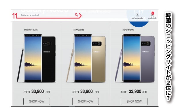 タイでもオンラインのショッピングサイトが伸びているが、韓国の大手通信企業が1年前に進出し、イレブンストリート 11street.co.thでサイトを運営しており、BTSプロンポン駅構内でも大々的に宣伝しているが、同社の幹部によると、「韓国は年に50%の伸びで、タイでも年に20%の伸び。あと6~7年のちには韓国並みの伸びになる」と見ており、現在、会員数は58万人で、今年末までに100万人を目ざしている。