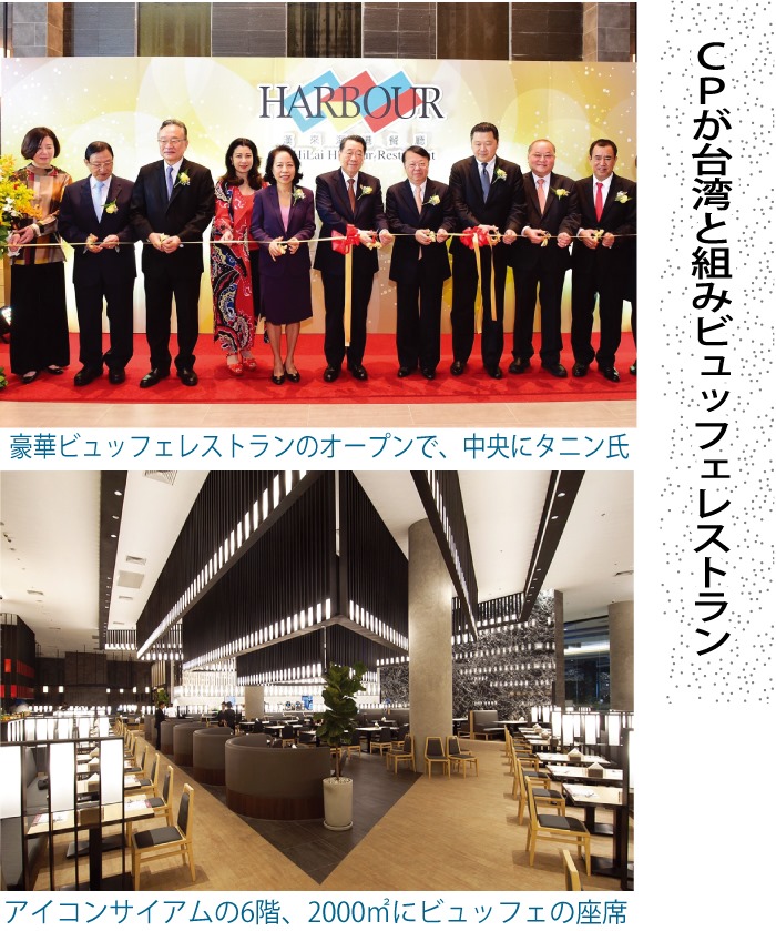 CP代表のタニン氏もかけつける意気込みで、2000㎡の敷地で、中華料理から日本料理、ヨーロッパ料理、タイ料理、デザートなどを提供し、昼間は1人799バーツ、夜は1人899バーツ、土日祝日は1人1099バーツとなっている。