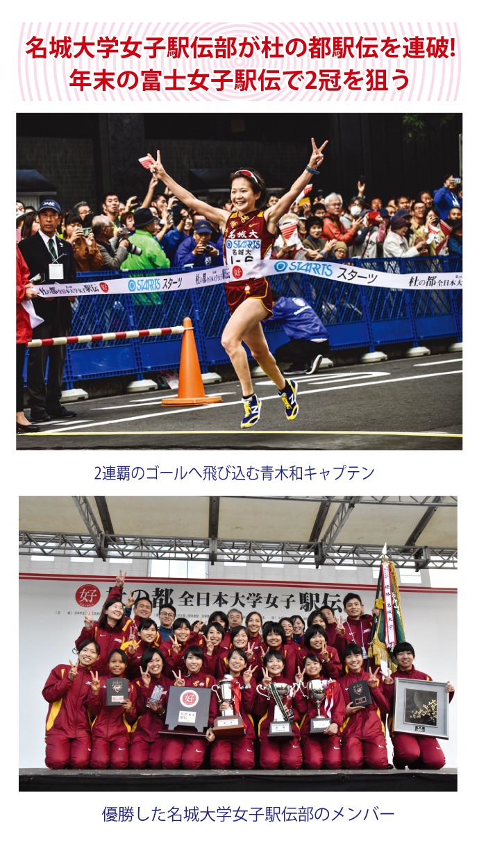 名城大学女子駅伝部は、2018年10月28日に仙台市で開催された第36回全日本大学女子駅伝対校選手権大会(杜の都駅伝)にて、2年連続3回目の優勝を果たした。