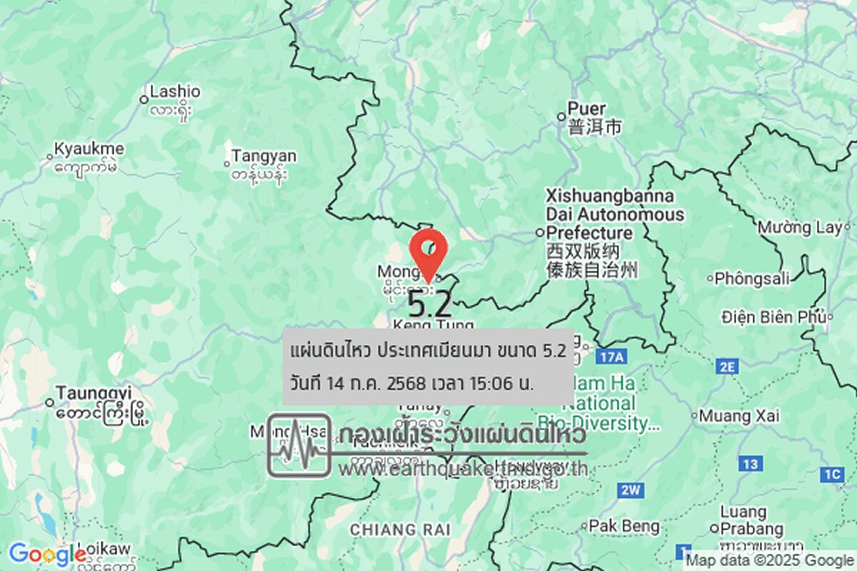7月14日15時6分、ミャンマー東部を震源とするマグニチュード5.2の地震が発生。震源はタイ・チェンライ県メーサーイ郡の北東約132km地点で、タイ国内でも揺れが確認された。