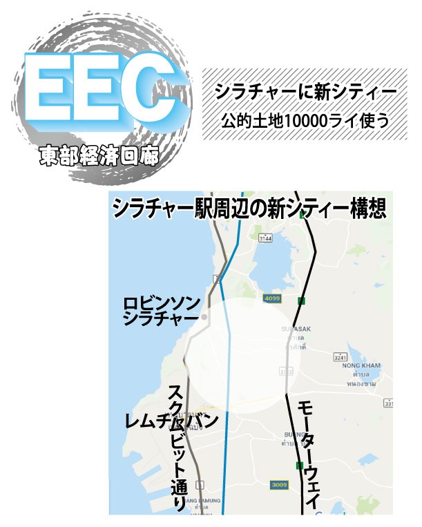 チョンブリー不動産協会によると、タイ東部経済回廊(EEC)の委員会との会合で、3空港を結ぶハイスピード鉄道のシラチャー駅周辺の半径50~60㎞の開発で、公的な土地でまだ開発されていない土地など10000ライを使い、新シ ...