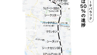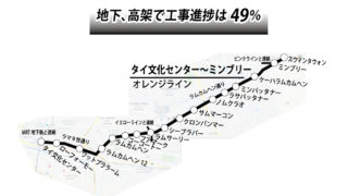 さて、工事中の2路線のモノレールと合わせて、もう1つ、建設中の路線がオレンジライン。今の地下鉄・タイ文化センター駅からミンブリーまでの22.5㎞が建設中で、そのうち、10駅が地下鉄、7駅が高架のため、道路上での建設中の状況はあまり目立 ...