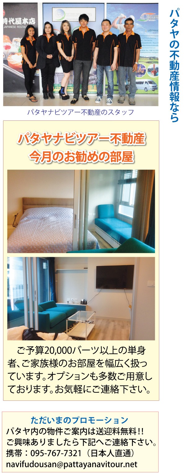 一時期、パタヤのコンドミニアムの販売で供給過剰の状態だったが、不動産コンサルティング会社によると、今年1~9月の新規コンドミニアム販売では、ジョムティエンが3100ユニット販売されており、全体で62%の販売となっている ...