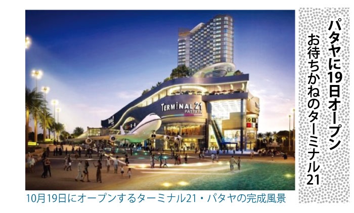 パタヤの新しいランドマークに!と、ターミナル21・パタヤが10月19日にオープンする。北パタヤのロータリー近くで、33ライの敷地で6階建て、延床は18万㎡にのぼり、投資額は60億バーツの大型プロジェクトだ。