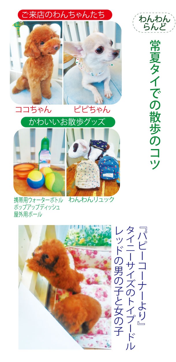 雨季は愛犬の足裏に汚れや菌が付着しやすく、皮膚病のリスクが高まります。散歩後は足裏をしっかり拭いて乾かし、清潔を保つことが大切です。Twinkle Pet Parkでは、足元を拭き取りやすいスタイルにカットす ...