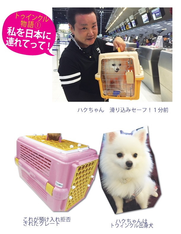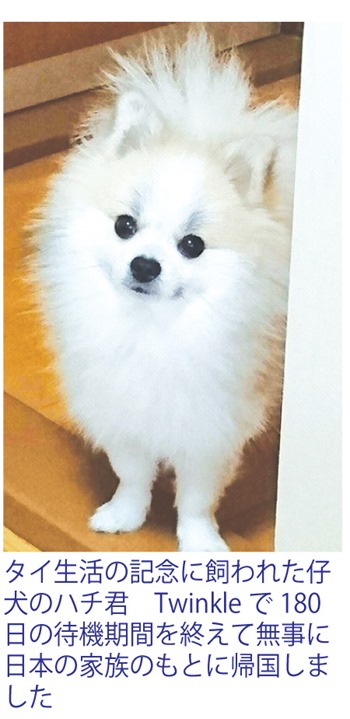 タイから犬猫を連れて日本へ帰国する時は手続き代行のエキスパート、「トウィンクル」にお任せ下さい。日本人愛犬飼育管理士が対応しています。