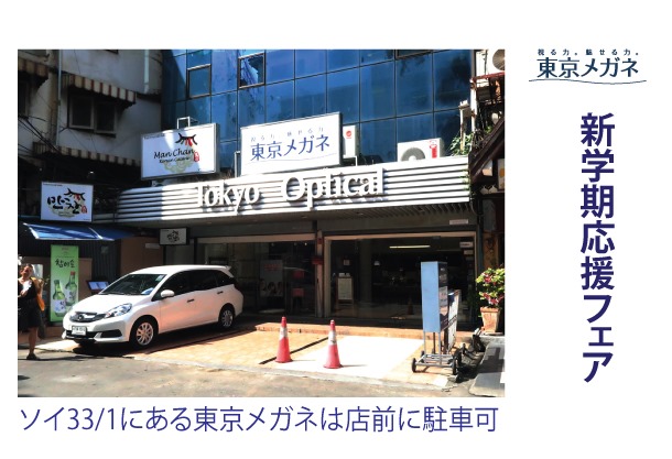 フジスーパーなど日本人向けの店が多く集まるスクムビット・ソイ33/1にある「東京メガネ・バンコク店」からのお知らせです。