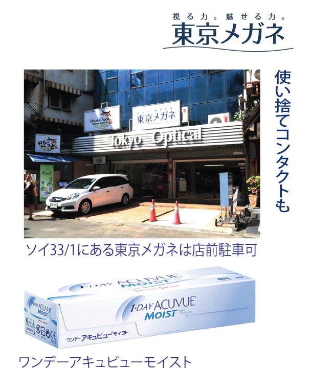 スクムビット・ソイ33/1の「東京メガネ」は日本で130年の歴史と実績がございます。日本で購入するのと同じ品質、同じサービスによるメガネ、コンタクトレンズをご購入頂けます。タイの眼鏡店でご満足できなかったお客 ...