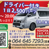 日本人スタッフが応対する運転手付きレンタカーサービスでは、日帰り利用か1泊、2泊などの旅行にも利用でき ...