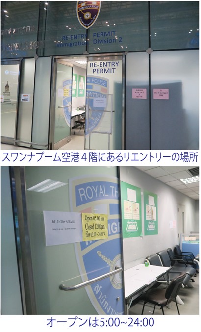タイで長期ビザを取った際は、タイ国外にそのビザをいかして出入りできるリエントリーパーミットも合わせて取るのがよいが、いつ国外に出るのかわからないのでその時に、という場合は、出国前にスワンナプーム空港でも取れる。場所は4階の出発フロアの ...