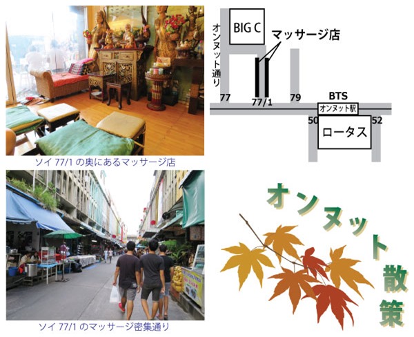 先日、日曜日にBTSオンヌット駅近くにあるタイ古式マッサージ店通りに行きました。スクムビット・ソイ77/1の通り沿いにマッサージ店が並んでいます。