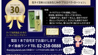 強力な殺菌効果もあるアロエベラをそのまま凝縮したローションが「アロエベラ・リキッド」。1本50㎖で430バーツですが、このたび、新年のプロモーションで1本390バーツで大奉仕いたします。さらに5本で1850バーツ、10 ...