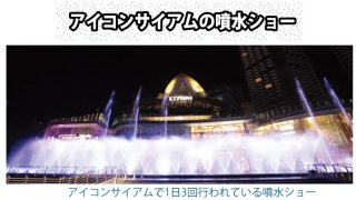 バンコクのランドマークとして、一躍脚光を浴びているアイコンサイアムだが、12月5日からは夕方から噴水ショーが始まっており、これも必見のイベントとなっている。