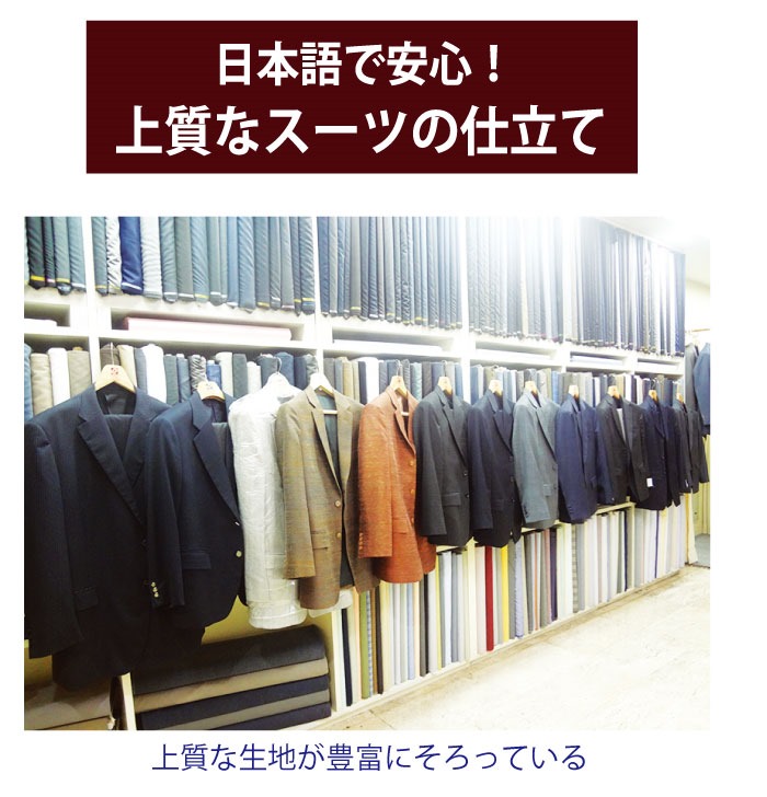 高級生地から格安の仕立てまであり、急ぎの場合は最短12時間で仕立てができます。事前に採寸 ...
