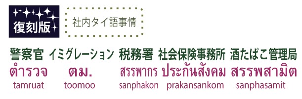 普通、まじめに仕事をしていれば、あまり関わることはないのですが、いわゆるタイの公的機関が会社にやってくる、という事態が、万に1つ、あるかも知れません。