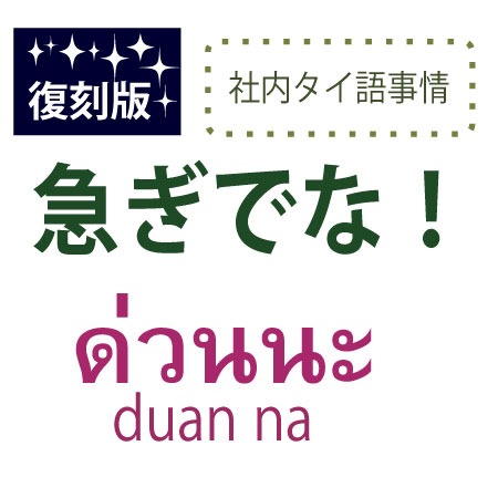 「ドゥアン」結構、このことばは会社の中で使います。タイ人従業員に指示を出すときに「急ぎで!」という意味で使います。
