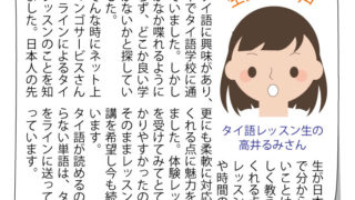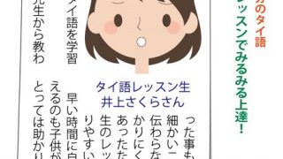タイ語を勉強しているが、思うようにタイ語を喋れない方に向けた「タイ語会話力アップレッスン」をスタートさせました。レッスンの内容 ...