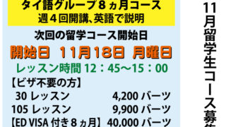 タイ語通学&オンラインレッスン、お申込み受付中