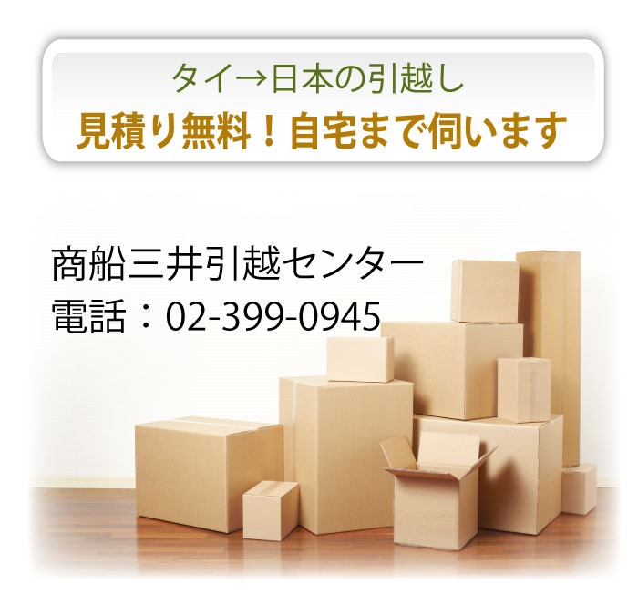 タイから日本への帰国・海外赴任に安心の国際引越しサービスを提供する商船三井引越センター。90年以上の実績と日本人スタッフによるサポートで、言語の壁なく安心。「SHELF to SHELF」一貫輸送で梱包からお ...